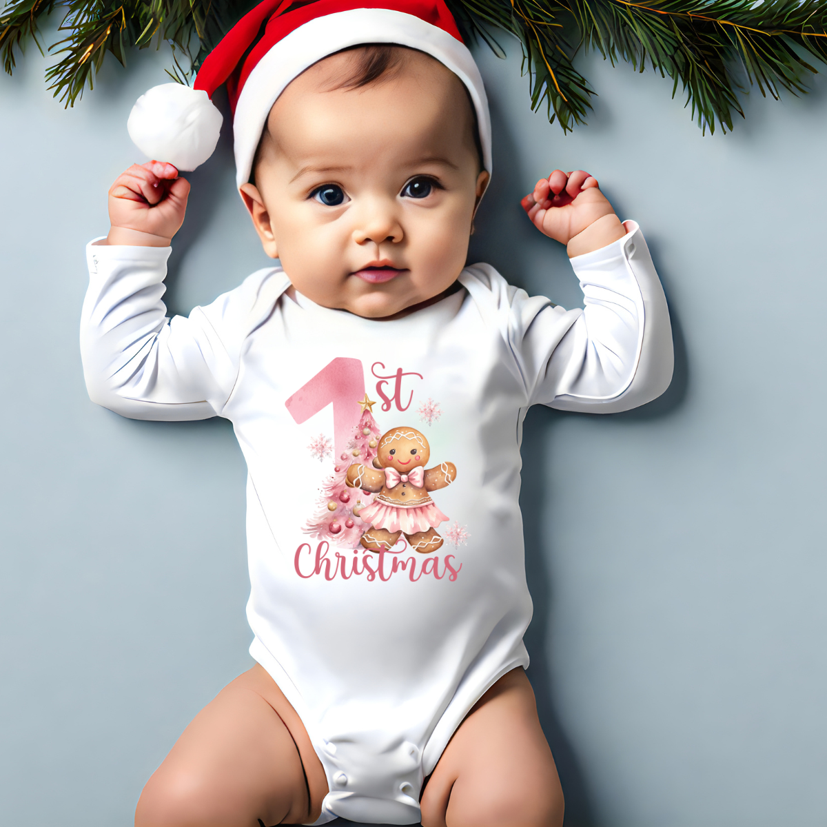 Este adorável body para bebé em rosa delicado foi criado especialmente para celebrar o primeiro Natal do seu pequeno tesouro. Com um design encantador que captura toda a magia desta época especial, é a peça perfeita para criar memórias que vão durar para sempre.