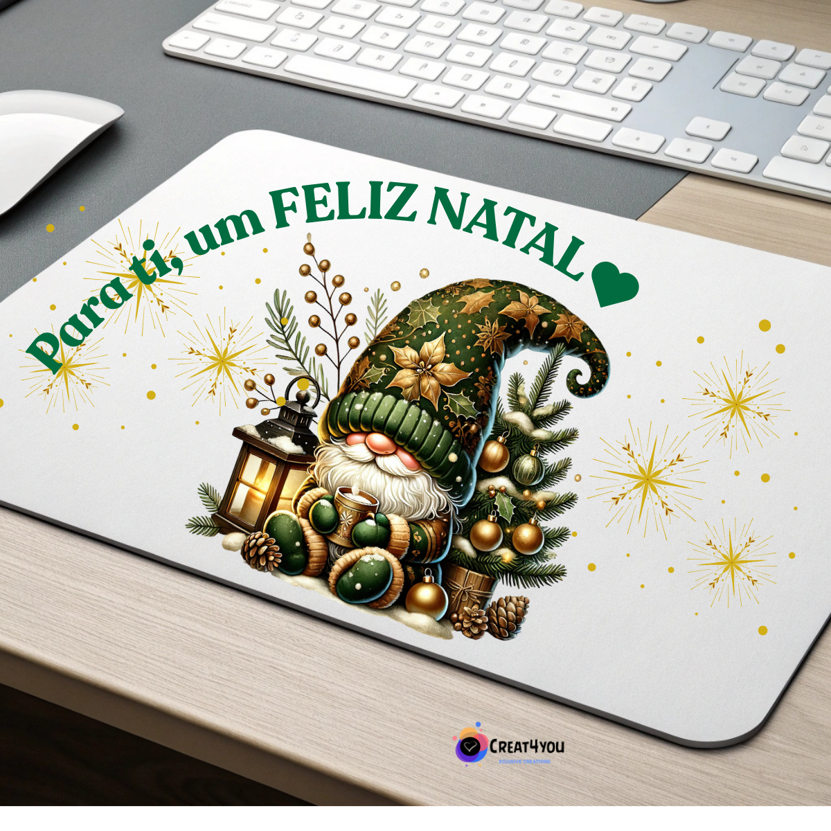 Este tapete de rato encantador com tema de Gnomo é perfeito para quem adora a época natalícia e quer adicionar um toque festivo, fofo e alegre ao seu escritório ou espaço de estudo. Prático, confortável e cheio de charme natalício! 🎄✨
